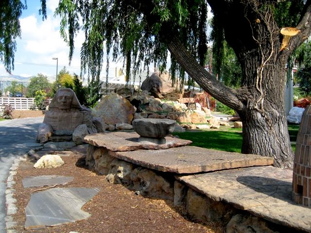 The Gilgal Sculpture Garden in Salt Lake City is a rather unusual place. The stone-carved sculptures and engravings were created by LDS Bishop Thomas Child, Jr. in the 1940s, and they portray numerous Biblical stories, and his Mormon religion. Most unusual has to go to the Joseph Smith Sphinx seen in this picture.